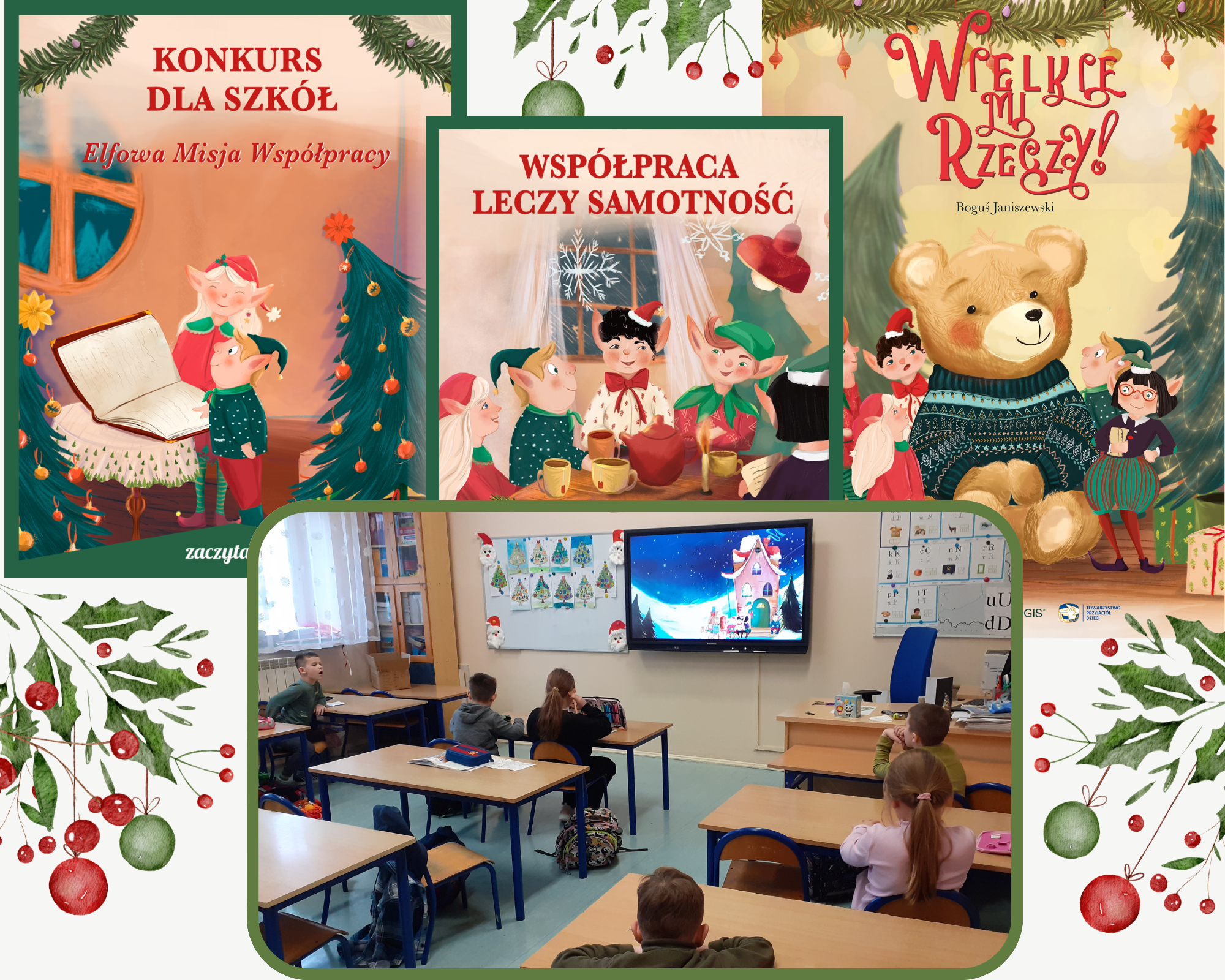15 grudnia 2025 r. uczniowie oddziału 1a uczestniczyli w zajęciach bajkoterapii. Podczas zajęć z Panią bibliotekarką – Sylwią Bilską uczniowie wysłuchali bajki terapeutycznej autorstwa Bogusia Janiszewskiego “Wielkie mi rzeczy” oraz wzięli udział w konkursie organizowanym przez portal edukacyjny @zaczytani.org „Elfowa Misja Współpracy”. Bajka jest opowieścią o elfach, które przestały się słuchać. O świecie, w którym każdy chce mieć rację, ale także to historia o sile drużyny i współpracy.