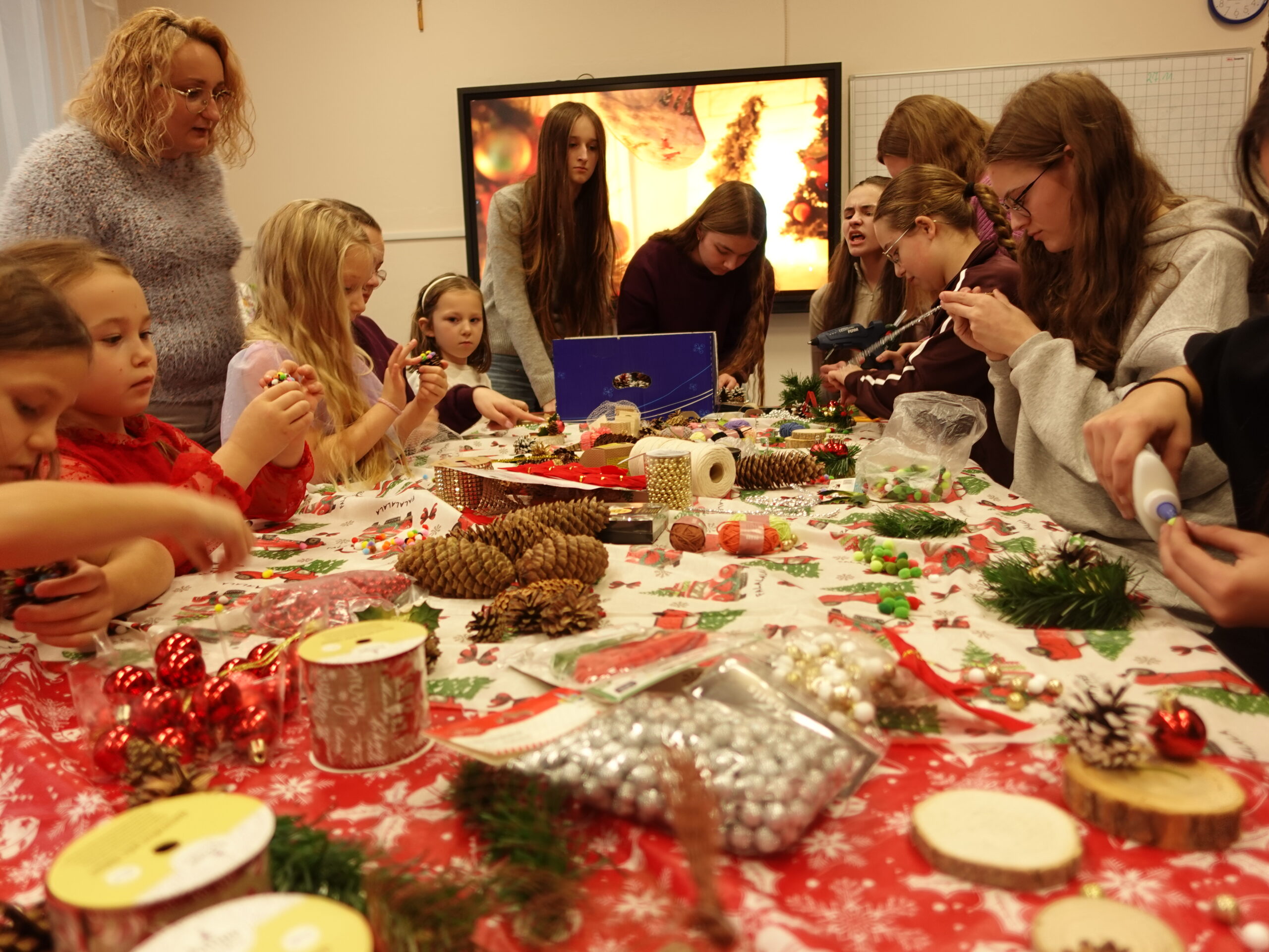 Przygotowania do kiermaszu poprzedziły warsztaty tworzenia stroików i ozdób świątecznych, w których Wolontariusze mieli okazję własnoręcznie wykonać dekoracje, korzystając z przygotowanych materiałów oraz inspiracji.