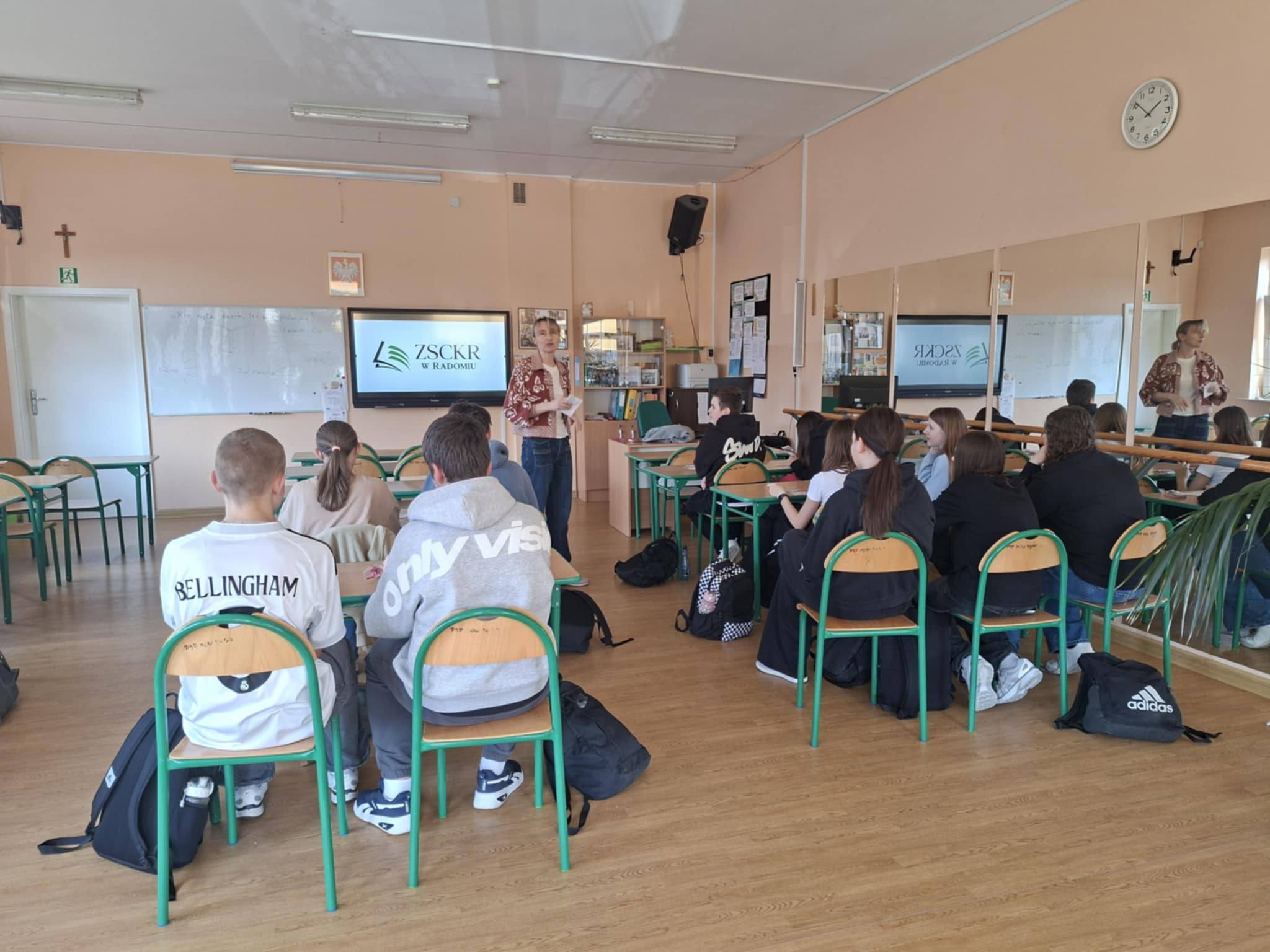 Doradztwo zawodowe – w ramach zajęć z doradztwa zawodowego odbyło się spotkanie z przedstawicielami Zespołu Szkół Centrum Kształcenia Rolniczego im. Władysława Reymonta w Radomiu oraz Profesja – Ośrodek Kształcenia Zawodowego w Radomiu. Uczniowie mieli okazję zapoznać się z ofertą edukacja, kierunkami kształcenia oraz możliwościami dalszego rozwoju zawodowego . Przedstawiono m.in. zawody praktyczne, które pozwalają zdobyć konkretne kwalifikacje i przygotować się do wejścia na rynek pracy. Szczególnym zainteresowanie wzbudziły kierunki związane z weterynarią oraz odnawialnych źródłami energii, odpowiadają na potrzeby współczesnego rynku i dają szerokie możliwościami zatrudnienia w przyszłości.