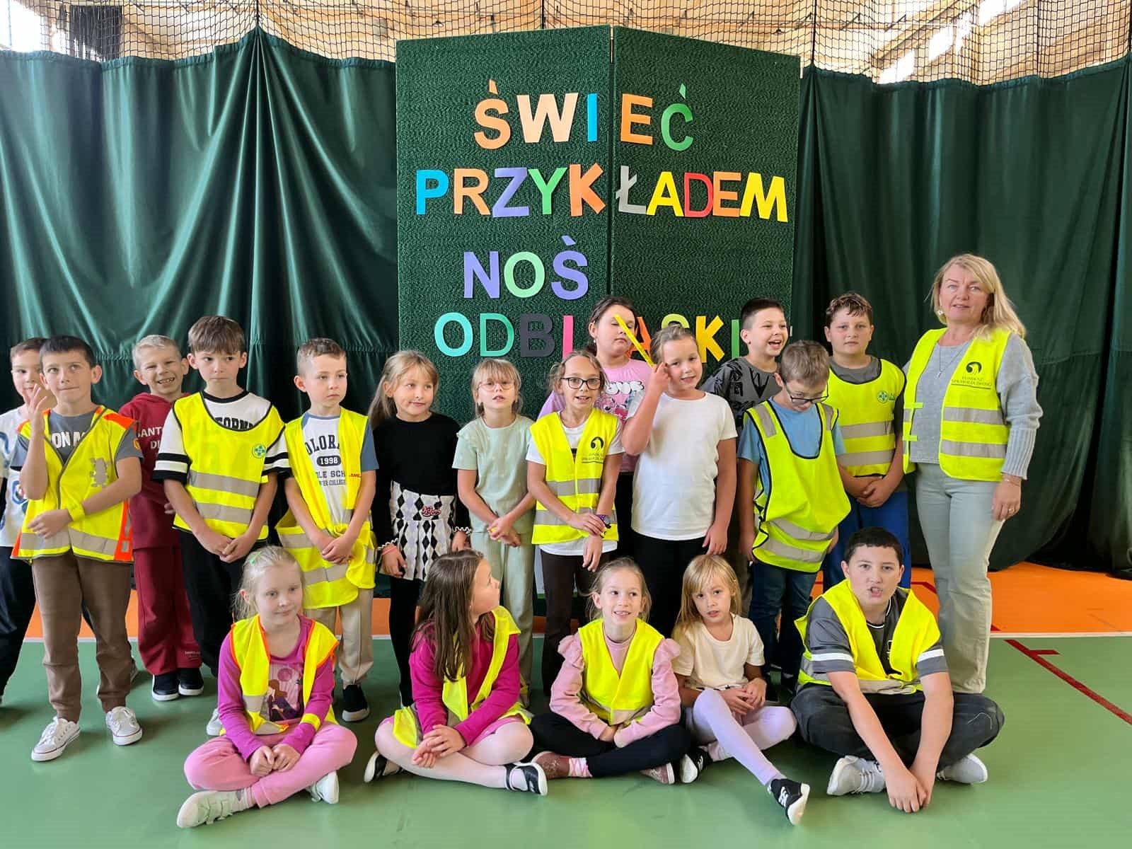 Spotkanie odbyło się pod hasłem: ”Świeć przykładem, noś odblaski”. Głównym celem spotkania było wyposażenie uczniów w wiedzę z zakresu bezpieczeństwa podczas ruchu drogowego. Podczas swojego wystąpienia funkcjonariuszki policji omówiły kwestie bezpieczeństwa w ruchu drogowym. Zapoznały dzieci z zasadami bezpieczeństwa podczas jazdy hulajnogą i jazdy rowerem. Szczególną uwagę zwróciły na poruszanie się pieszych po różnego rodzaju drogach. Uwrażliwiły dzieci na konieczność noszenia znaków odblaskowych po zmroku.
