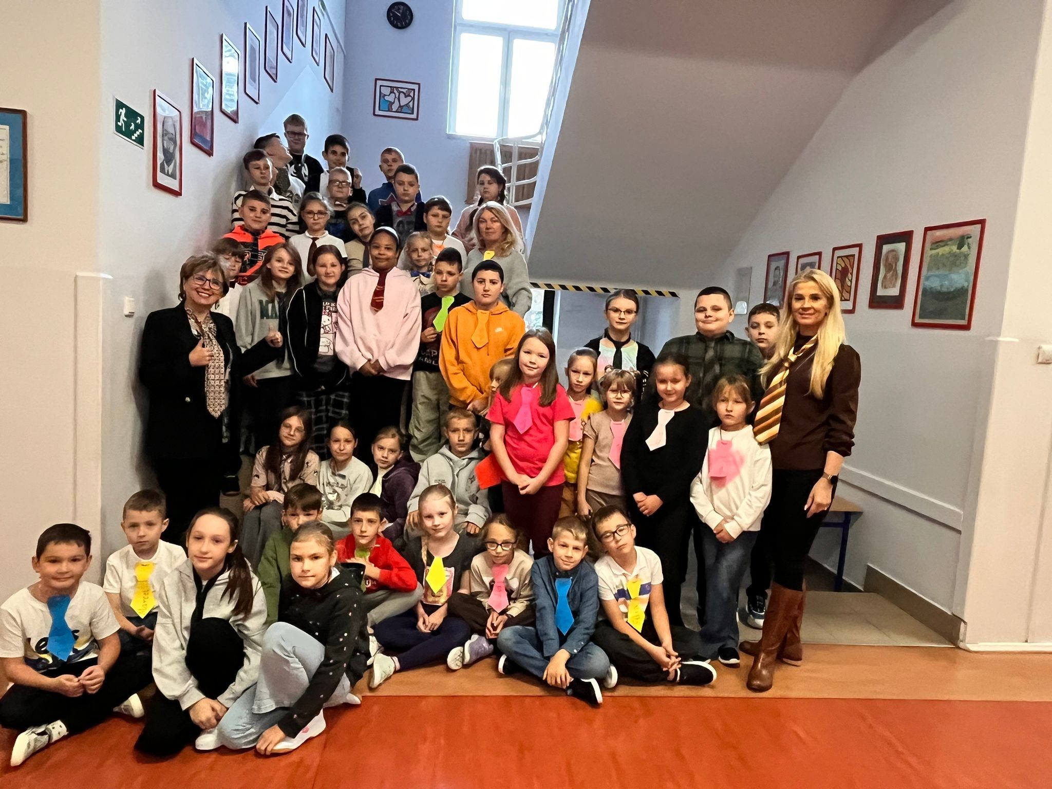 Tradycją już stało się, że 30 września korytarze naszej podstawówki zamieniają się w prawdziwą galerię elegancji. Tego dnia Samorząd Uczniowski organizuje akcję „Dzień Chłopaka – dniem muchy i krawata”, która na stałe wpisała się w szkolny kalendarz. Od samego rana dało się wyczuć podniosły charakter wydarzenia, gdy społeczność uczniowska pojawiła się w krawatach. Każda klasa organizowała to święto również we własnym gronie, obdarowując chłopaków oryginalnymi upominkami.