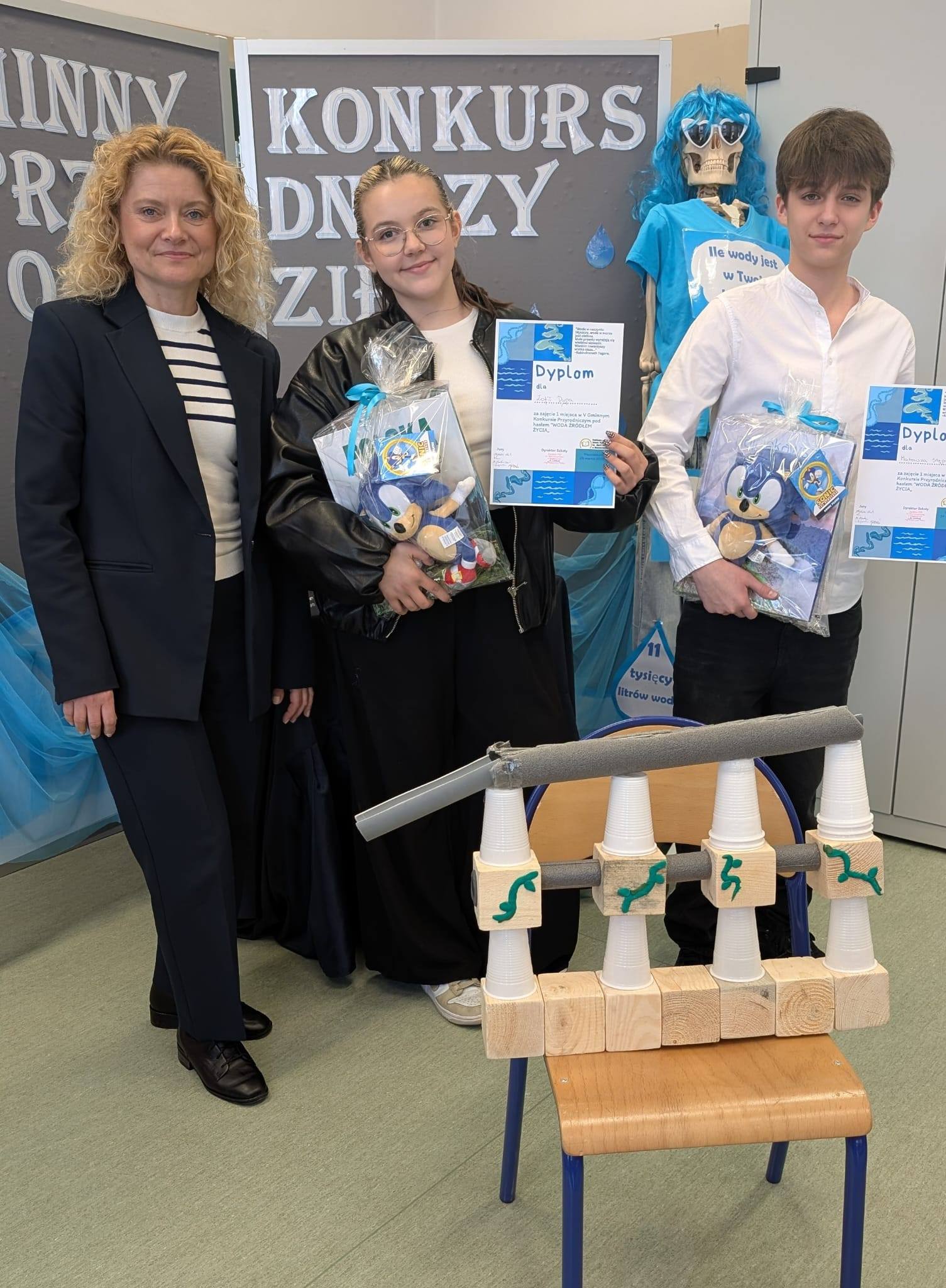 Miło nam poinformować, że uczniowie oddziału 7A Zofia Dypa i Mateusz Stępień pod opieką Pani Iwony Stefańskiej – Stanik zajęli 1 miejsce w Gminnym konkursie przyrodniczym ” Woda źródłem życia”, który odbył się 24 marca w PSP w Mazowszanach. Był to turniej drużynowy, w którym poszczególne zespoły rozwiązywały interdyscyplinarny ” wodny quiz” oraz wykonywały zadanie konstrukcyjne- akwedukt z udostępnionych materiałów. Nasi uczniowie wykazali się wszechstronną wiedzą i umiejętnością współpracy, które zapewniły im zwycięstwo.