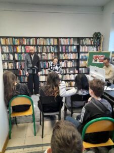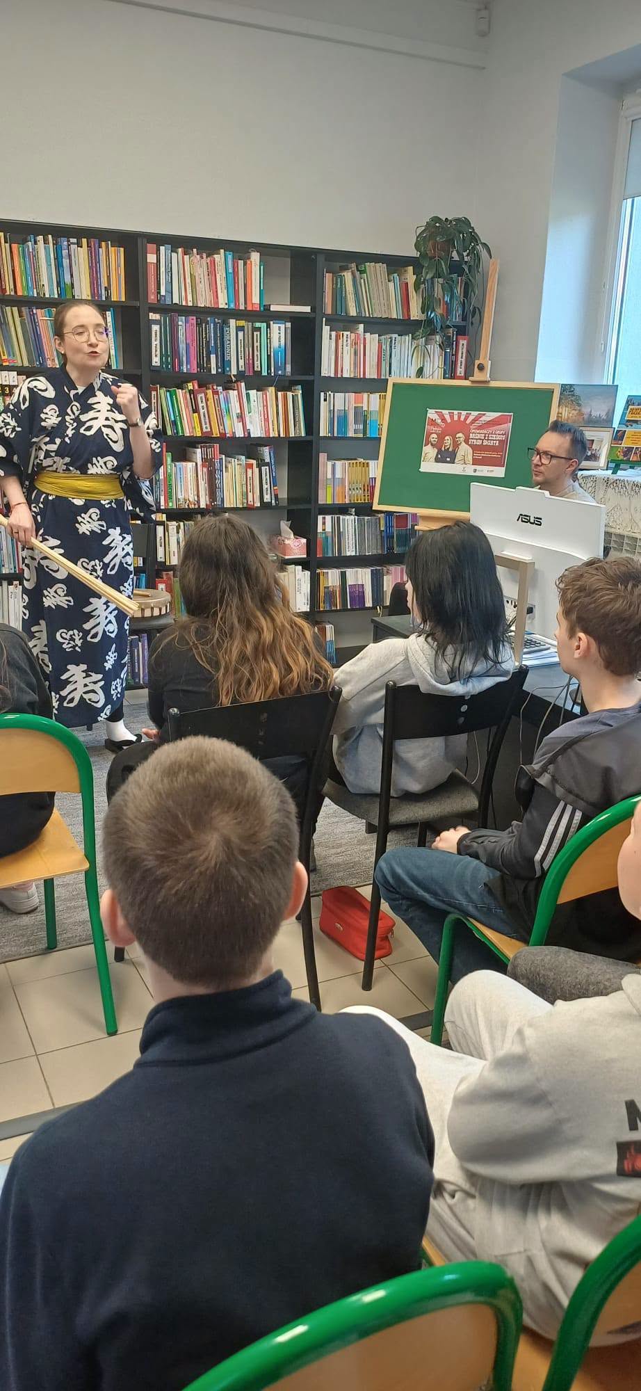 Dnia 17 kwietnia uczniowie klasy VIb z polonistką Małgorzatą Grzesiak wzięli udział w wyjątkowym spotkaniu w Gminnej Bibliotece Publicznej w Kowali-Stępocinie, podczas którego mieli okazję wysłuchać japońskich opowieści w wykonaniu grupy Baśnie z sześciu stron świata. Spotkanie było niezwykle interesujące i pozwoliło przenieść się w świat kultury oraz tradycji Japonii. Opowiadacze w barwny i ciekawy sposób przedstawili historie, które rozbudziły wyobraźnię uczniów i zachęciły do poznawania innych kultur.