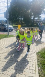 24 października 2025 odbyły się zajęcia pod hasłem BEZPIECZNY PRZEDSZKOLAK NA DRODZE. Nadrzędnym celem prowadzonej akcji było uświadomienie dzieciom konieczności przestrzegania podstawowych zasad bezpieczeństwa w drodze do szkoły.