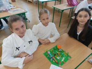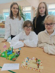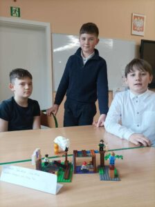 Uczniowie oddziałów klas VA i VB pracowali tą metodą w piątek 10 października na lekcji języka polskiego wspólnie z Panią Agnieszką Rozwadowską-Maj. Były to zajęcia podsumowujące cykl lekcji dotyczącej lektury pt. „Chłopcy z Placu Broni”. Uczniowie samodzielnie wybrali elementy świata przedstawionego w lekturze, które szczególnie zapadły im w pamięci i przedstawiali je za pomocą klocków LEGO. Po wyznaczonym czasie na stworzenie konstrukcji, nastąpił czas na prezentację swoich prac. Podczas zajęć każdy uczeń był aktywny, widoczna była atmosfera współpracy, twórczego działania, skupienia. Każda budowla ściśle wiązała się z lekturą i została przekonująco uzasadniona i zaprezentowana.