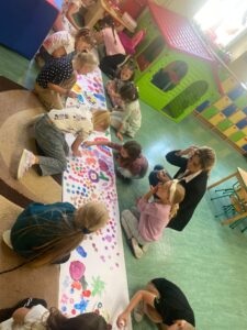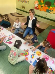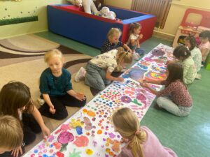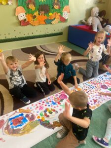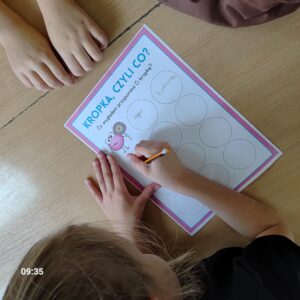 Tego dnia obowiązywały ubrania w kropki, zadania w kropki, dzieci obejrzały film „Kropka”. Jego bohaterką jest mała Vashti, która dzięki malutkiej kropce i wspaniałej nauczycielce plastyki uwierzyła w swoje możliwości. Po projekcji oraz pogadance na temat filmu wszyscy uczniowie postanowili pokazać swoje talenty. Przystąpili do wykonania swoich kropkowych dzieł malując je kolorowymi farbami. Wspaniałe efekty ich prac możemy podziwiać na zamieszczonych poniżej zdjęciach.