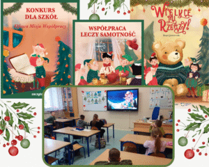 15 grudnia 2025 r. uczniowie oddziału 1a uczestniczyli w zajęciach bajkoterapii. Podczas zajęć z Panią bibliotekarką – Sylwią Bilską uczniowie wysłuchali bajki terapeutycznej autorstwa Bogusia Janiszewskiego “Wielkie mi rzeczy” oraz wzięli udział w konkursie organizowanym przez portal edukacyjny @zaczytani.org „Elfowa Misja Współpracy”. Bajka jest opowieścią o elfach, które przestały się słuchać. O świecie, w którym każdy chce mieć rację, ale także to historia o sile drużyny i współpracy.