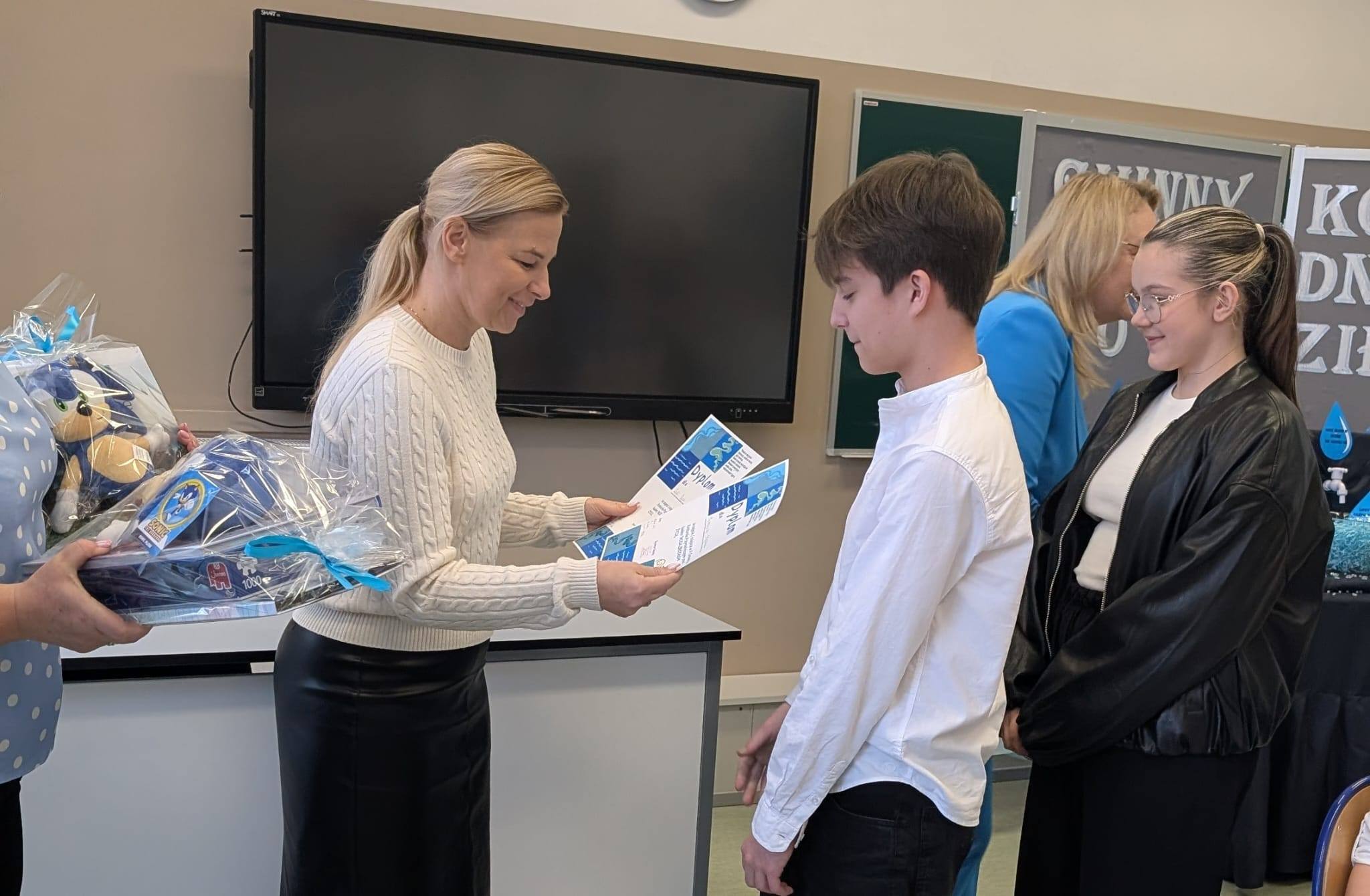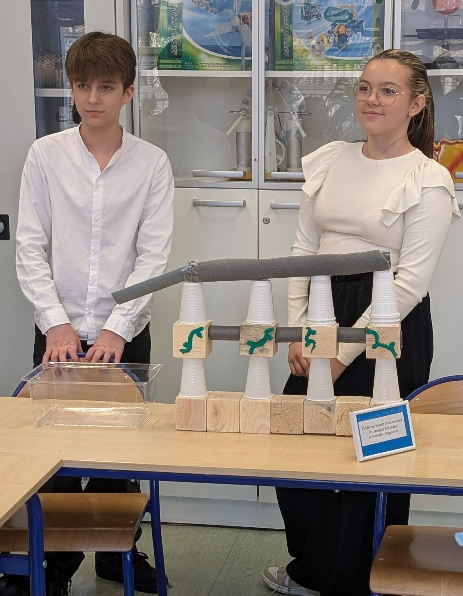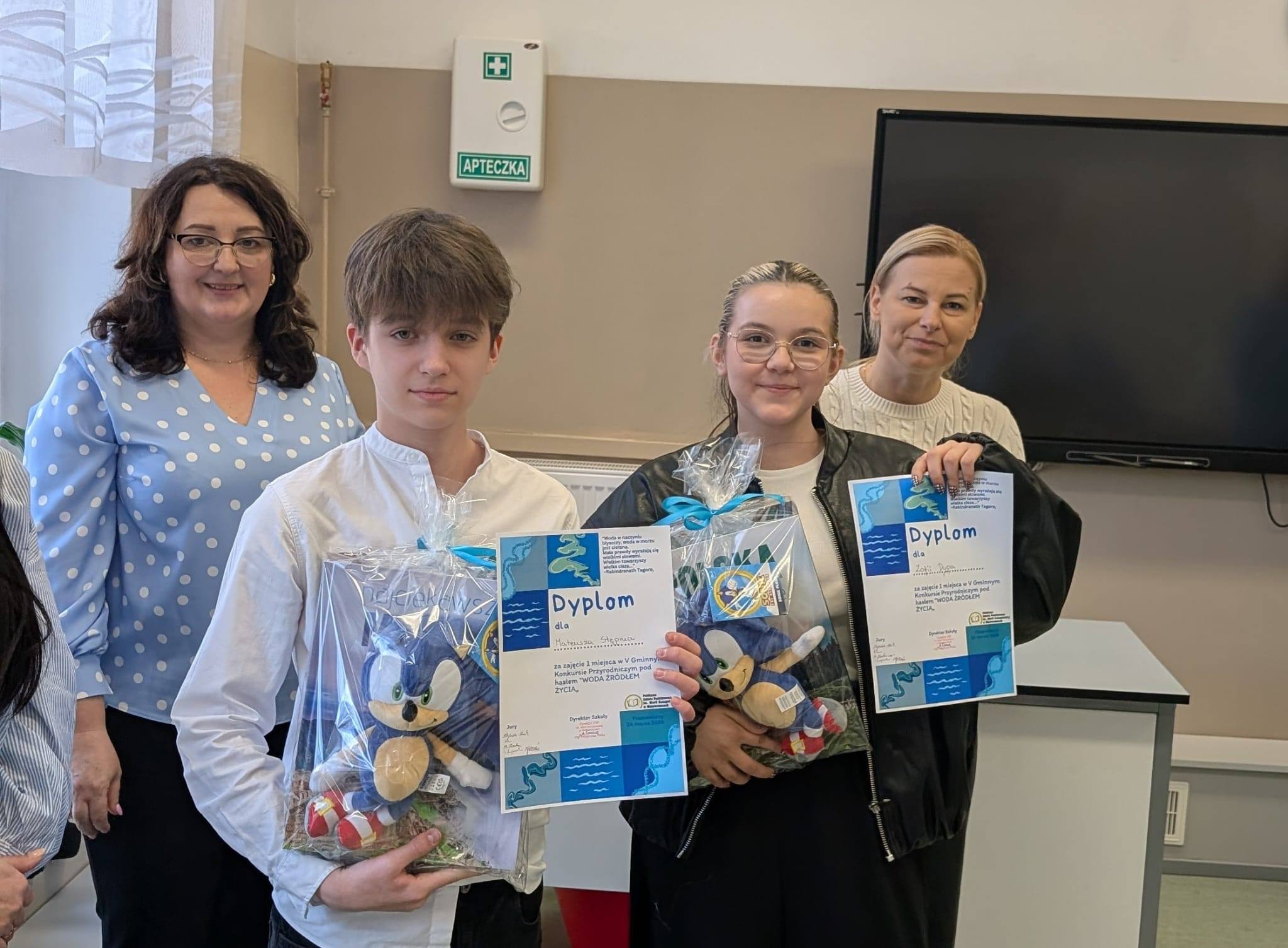 Miło nam poinformować, że uczniowie oddziału 7A Zofia Dypa i Mateusz Stępień pod opieką Pani Iwony Stefańskiej – Stanik zajęli 1 miejsce w Gminnym konkursie przyrodniczym ” Woda źródłem życia”, który odbył się 24 marca w PSP w Mazowszanach. Był to turniej drużynowy, w którym poszczególne zespoły rozwiązywały interdyscyplinarny ” wodny quiz” oraz wykonywały zadanie konstrukcyjne- akwedukt z udostępnionych materiałów. Nasi uczniowie wykazali się wszechstronną wiedzą i umiejętnością współpracy, które zapewniły im zwycięstwo.
