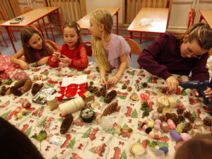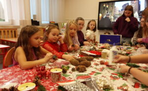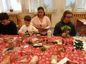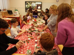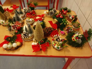 Przygotowania do kiermaszu poprzedziły warsztaty tworzenia stroików i ozdób świątecznych, w których Wolontariusze mieli okazję własnoręcznie wykonać dekoracje, korzystając z przygotowanych materiałów oraz inspiracji.