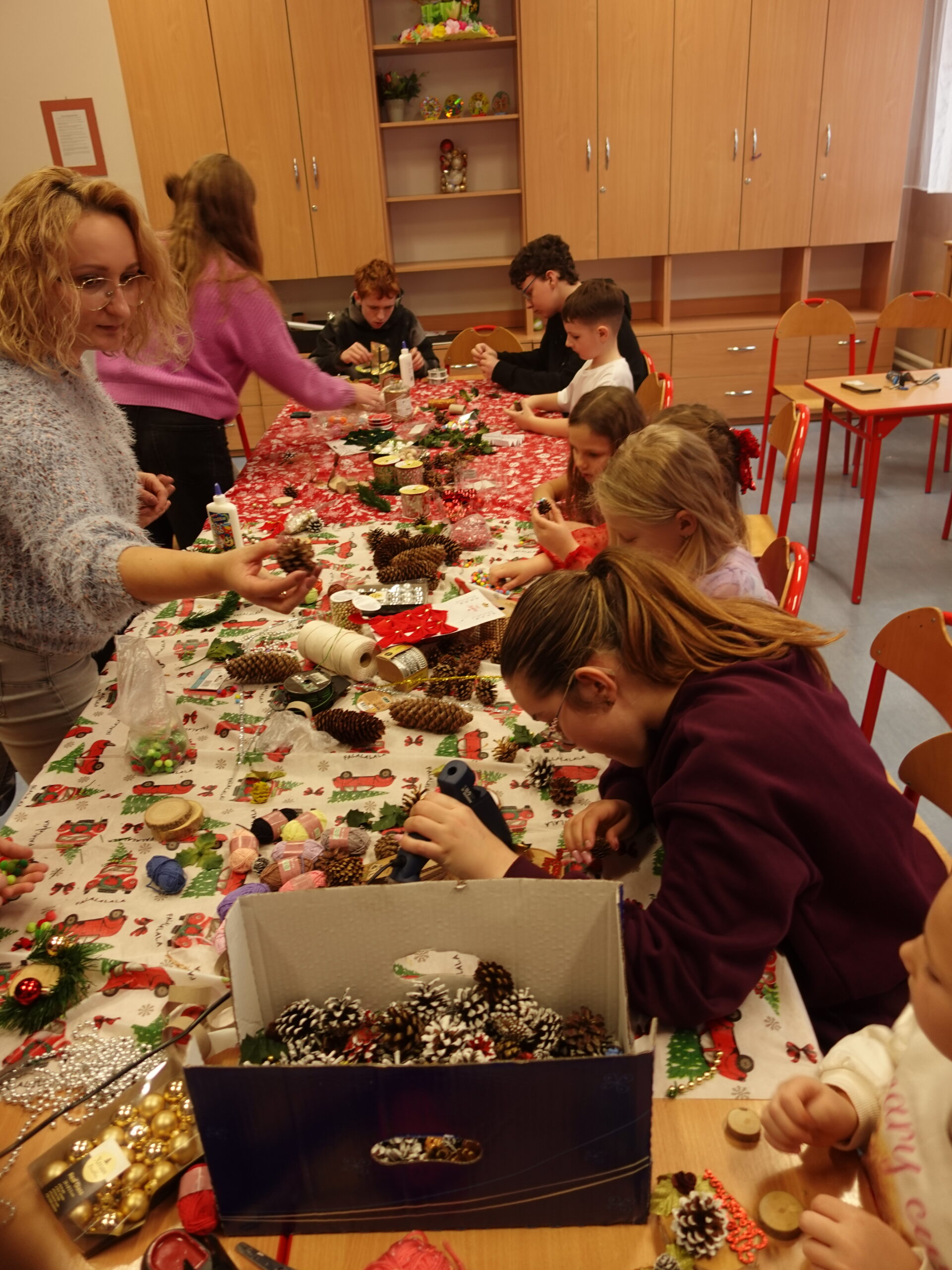 Przygotowania do kiermaszu poprzedziły warsztaty tworzenia stroików i ozdób świątecznych, w których Wolontariusze mieli okazję własnoręcznie wykonać dekoracje, korzystając z przygotowanych materiałów oraz inspiracji.