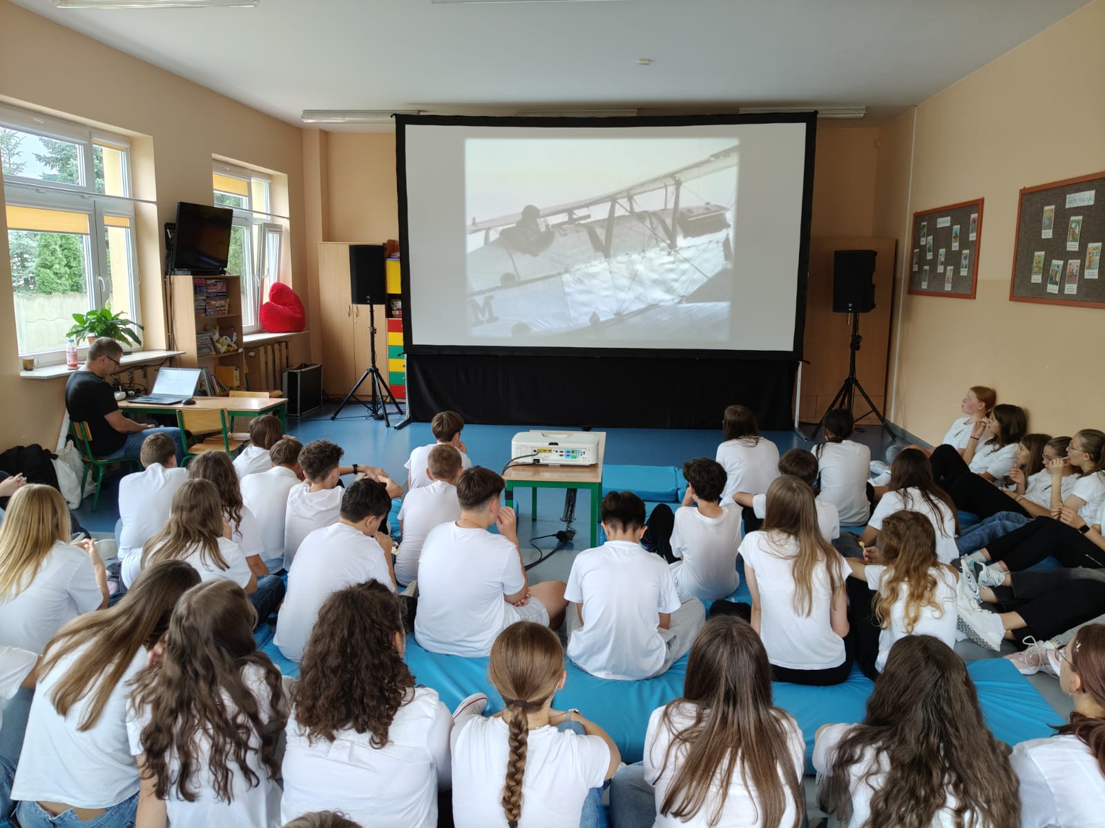 Powiatowy Instytut Kultury z siedzibą w Iłży we współpracy z Muzeum Sił Powietrznych w Dęblinie zorganizował “Podniebną szkołę”, czyli pokazy gier, warsztatów i innych atrakcji dla naszych uczniów. Był wyświetlany film “Żwirko i Wigura – 15 dni chwały”. Odbyła się też wystawa poświęcona lotnikom “Start do wieczności”. Pani dyrektor Małgorzata Konieczna powitała przybyłych Gości: Pana Waldemara Trelkę – starostę radomskiego, Pana Zdzisława Mroczkowskiego przewodniczącego Rady Powiatu, Pana Wiesława Pachniewskiego wójta Gminy Kowala, Pana Dariusza Chruślaka przewodniczącego Rady Gminy oraz Pana Jarosława Słomkę wiceprzewodniczącego Rady Gminy, Pana Jakuba Mitka wicedyrektora Muzeum Sił Powietrznych w Dęblinie.