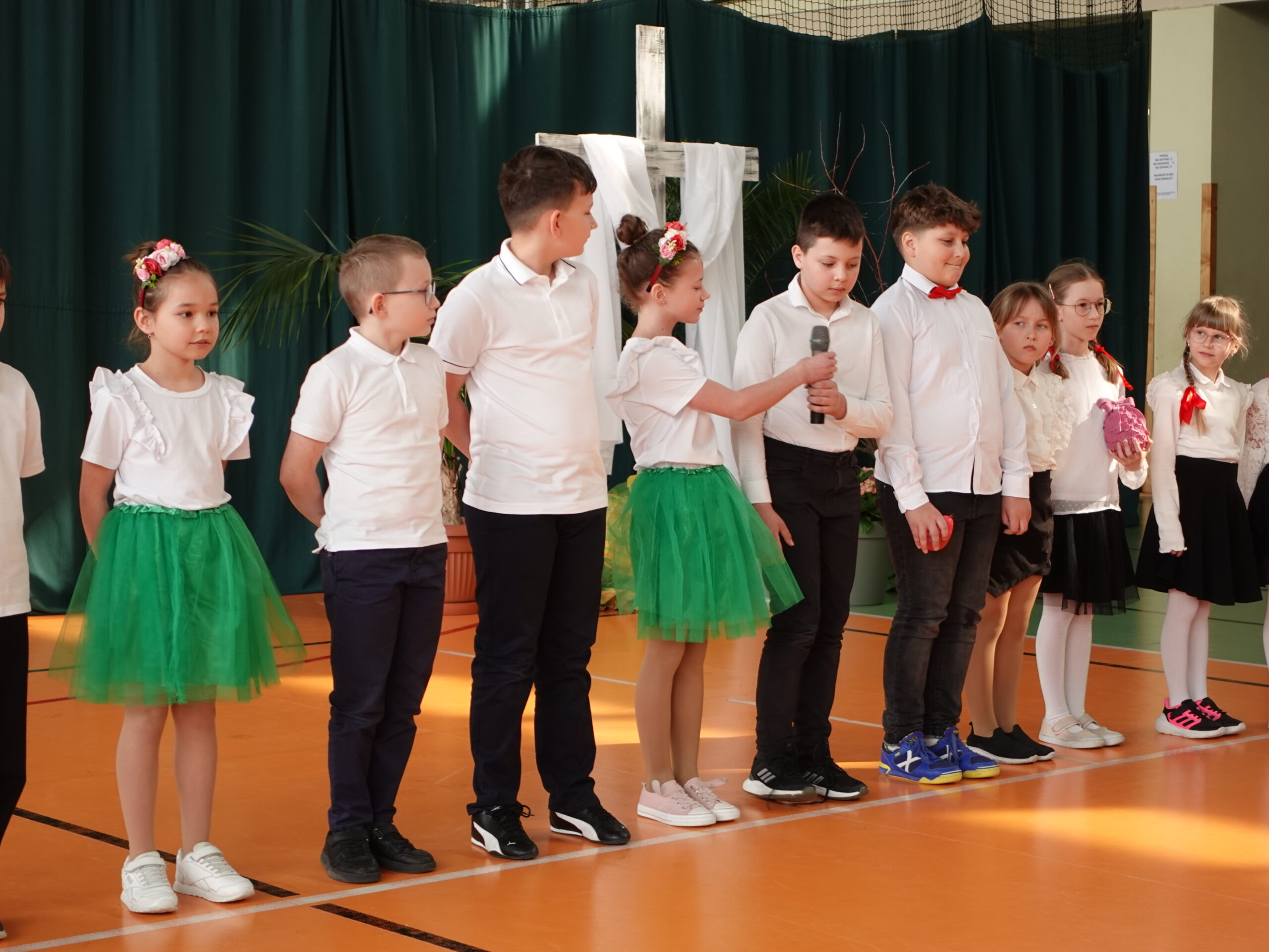 Podczas uroczystości uczniowie zaprezentowali dwa wyjątkowe występy artystyczne. Inscenizacja pt. „O wielkanocnych obyczajach”, wiosenny taniec w wykonaniu uczniów oddziałów 3B i 2A, które przybliżyły tradycje i zwyczaje związane z tym szczególnym czasem. Z kolei uczniowie klas IV–VIII przedstawili poruszającą pantomimę pt. „Księga życia”.