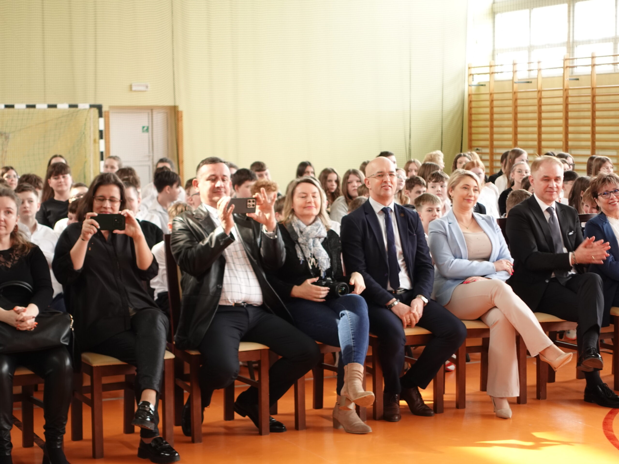 Swoją obecnością wydarzenie uświetnili zaproszeni Goście: Wójt Gminy Kowala Pan Wiesław Pachniewski, Wiceprzewodniczący Rady Gminy Kowala Pan Jarosław Słomka, Dyrektor Gminnej Biblioteki Pani Anna Dobrzańska, Dyrektor Gminnego Ośrodka Pomocy Społecznej Pani Anna Zaleszczyk, Przewodnicząca Rady Rodziców Pani Paulina Rogala oraz pielęgniarka szkolna Pani Małgorzata Komór, za co serdecznie dziękujemy.