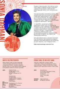 i komentatorki medialnej, która poświeciła swoje życie obronie praw człowieka– Sonia Dahmani z Tunezji.