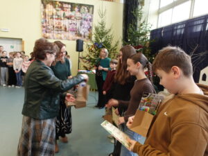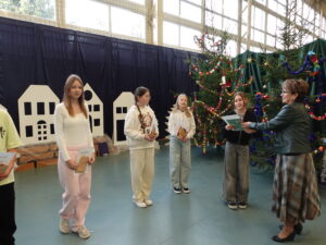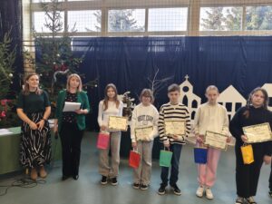 Podczas apelu, 16 grudnia 2025 r. odbyło się uroczyste wręczenie nagród i wyróżnień w organizowanych konkursach szkolnych: „Książka, która przeniosła mnie w inny świat” oraz „Stroik świąteczny”.